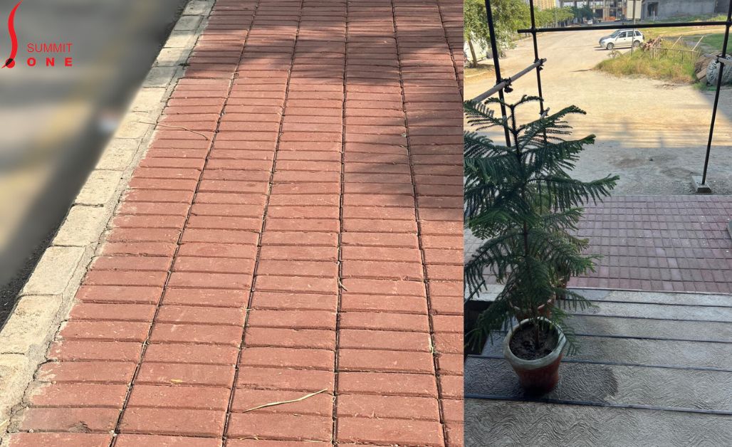 A pavement has been beautifully developed around the building, enhancing both accessibility and the overall aesthetic appeal of the exterior.